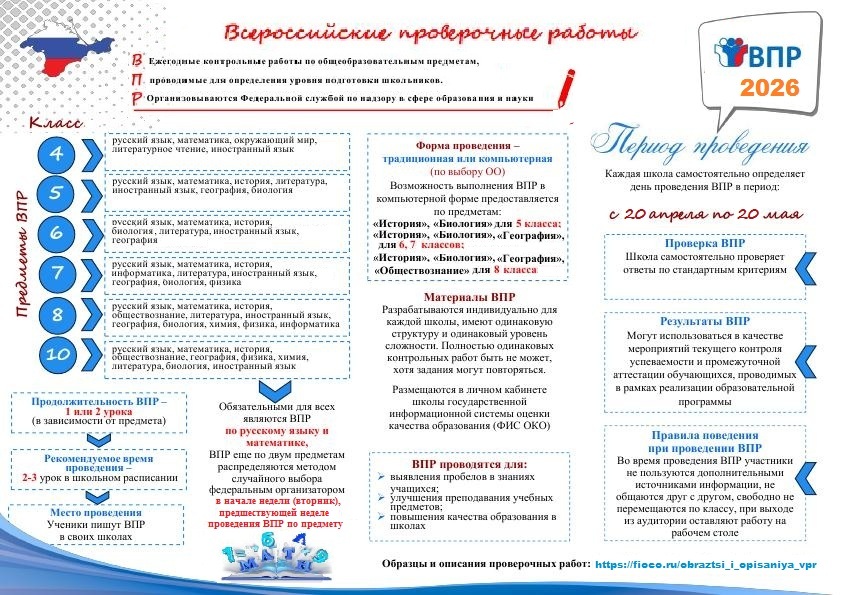 С образцами ВПР-2026 можно ознакомиться на сайте федерального государственного бюджетного учреждения «Федеральный институт оценки качества образования» (ФИОКО)